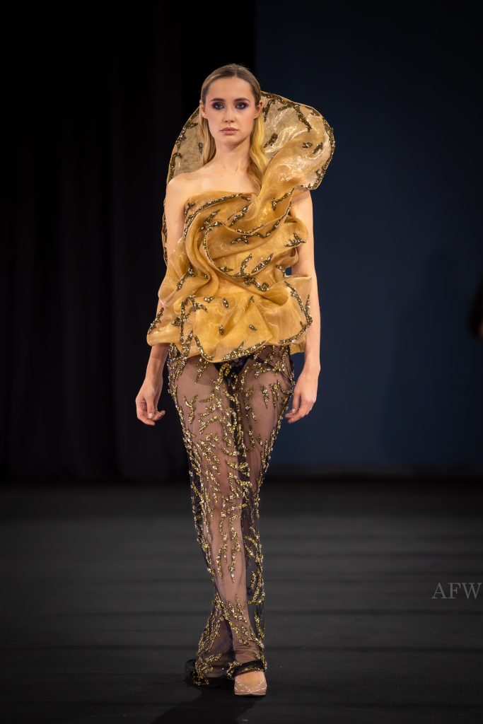 Die Kollektionen in Tirana zeigten eine bemerkenswerte Bandbreite kreativer Ansätze. Der Preisträger des Grand Prix und des Big See Award, Etnik Shala (Kosovo), eröffnete mit Etnikografi und Symphony of Flower – Hommagen an die kulturellen Wurzeln der Region, modern interpretiert.